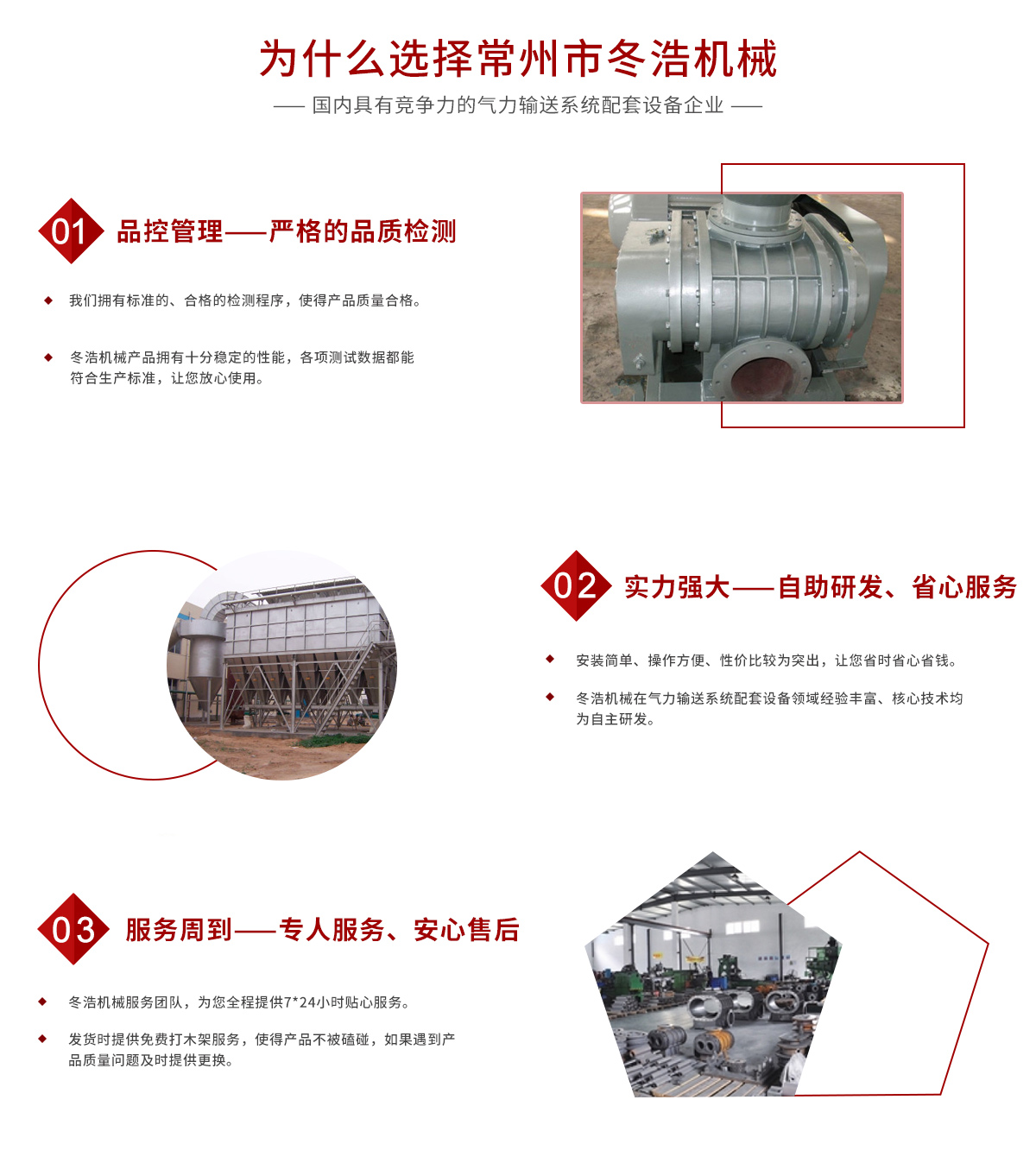 常州市冬浩機械有限公司占地面積5000平方米,擁有一支專業(yè)的科技研發(fā)團隊和配備專業(yè)的生產(chǎn)設(shè)備。專業(yè)致力于氣力輸送系統(tǒng)配套設(shè)備的研發(fā)、生產(chǎn)及銷售。產(chǎn)品在實際應(yīng)用中不斷創(chuàng)新、不斷升級,現(xiàn)已對接實現(xiàn)自動化、智能化、人性化。實踐證明公司生產(chǎn)的吸糧機系列、高溫羅茨風(fēng)機系列、關(guān)風(fēng)機系列、氣力輸送設(shè)備系列、特殊工況訂制系列的產(chǎn)品被廣泛運用于石油化工、油脂、化工干燥、除塵、冶金、環(huán)保、電子、煤炭、建筑、電力機械、糧食、飼料等行業(yè)。為解決輸送、搬運等環(huán)節(jié)中節(jié)約大量的人力、財力;從而提高了生產(chǎn)效率。